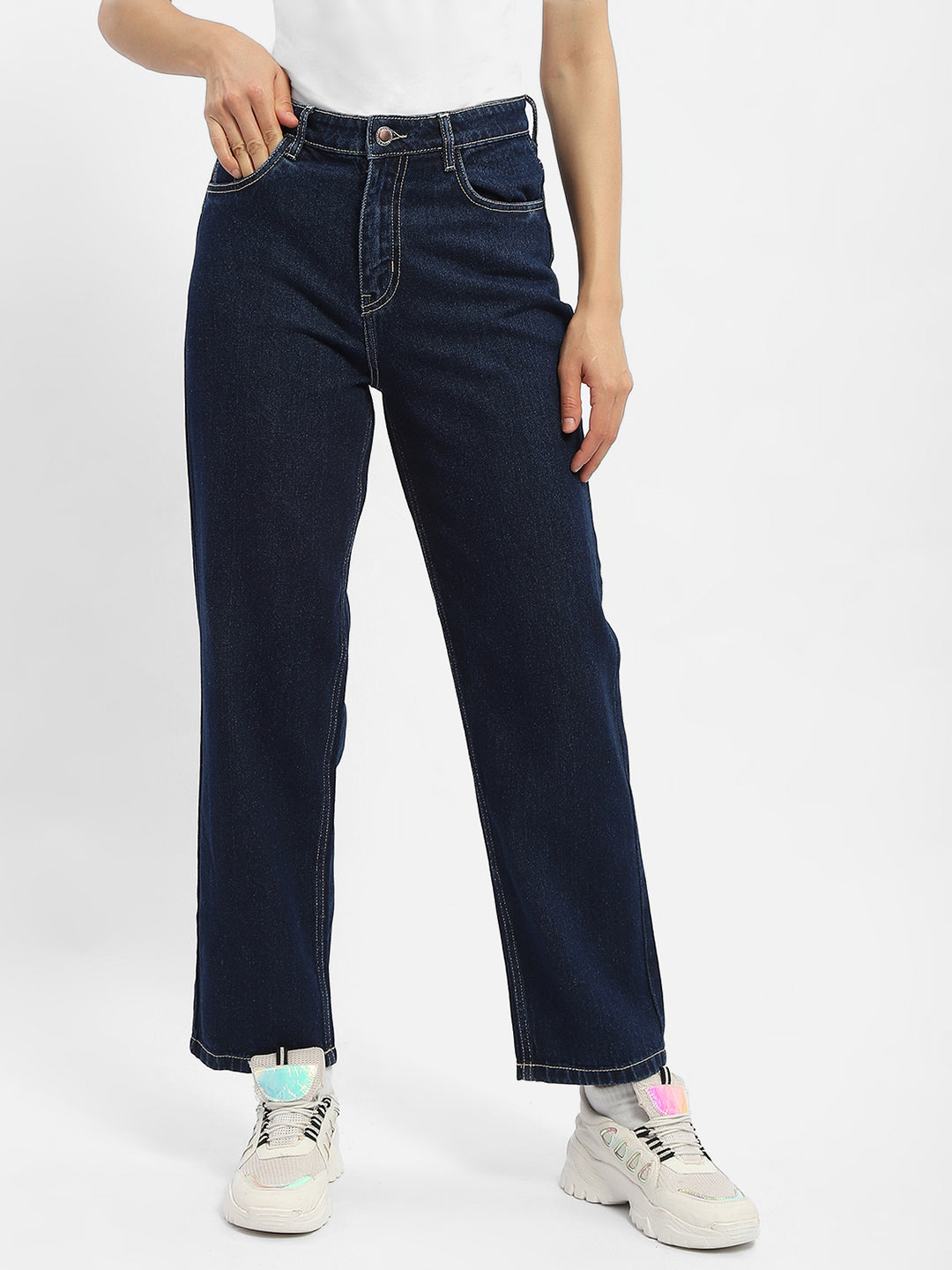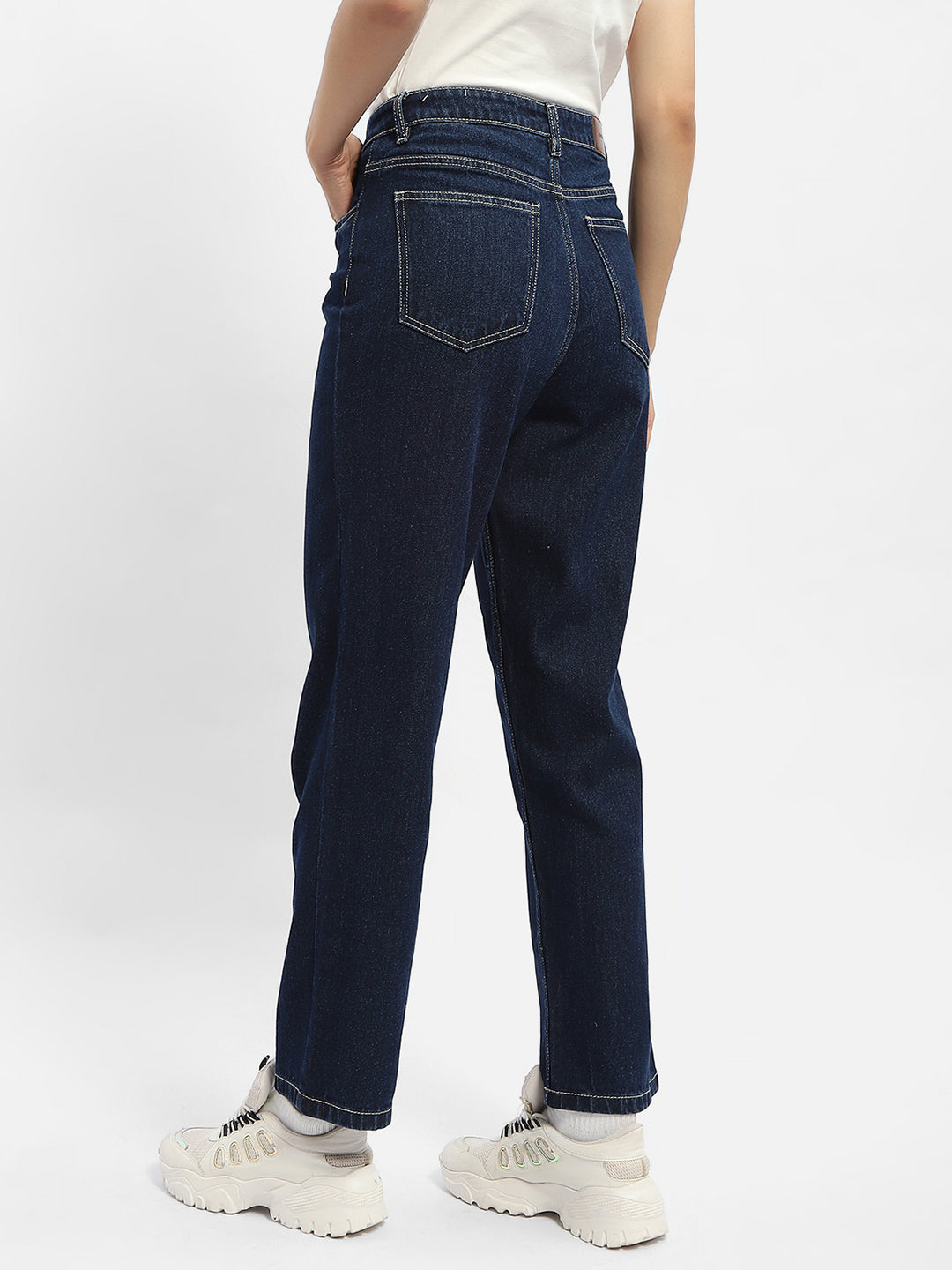 Madame Solid Blue Straight Jeans