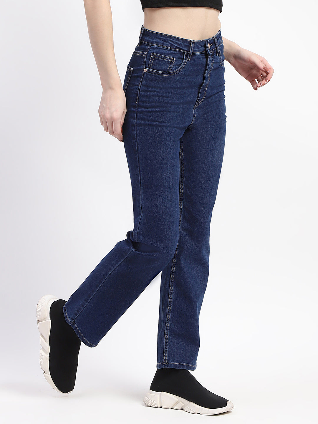 Madame Straight-Fit Dark Blue Cotton Denim Jeans