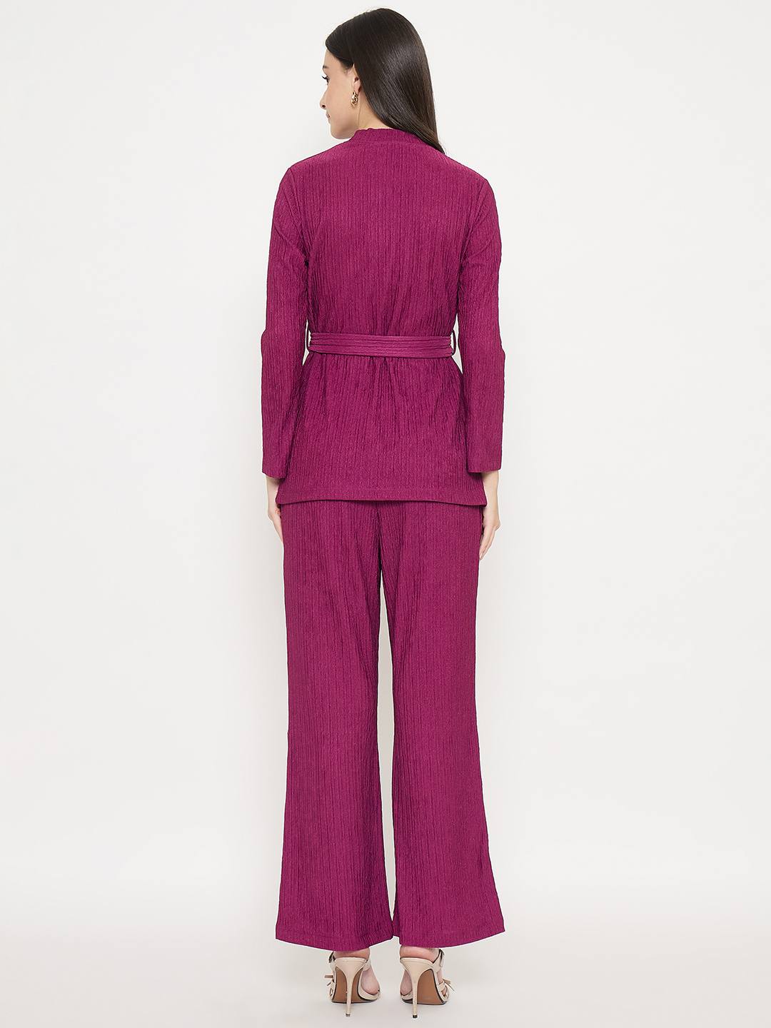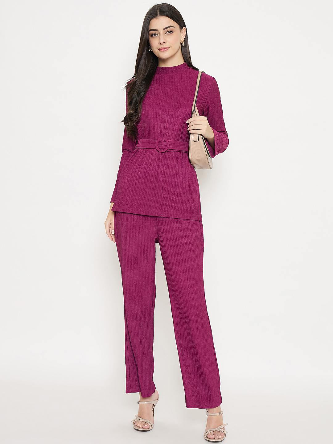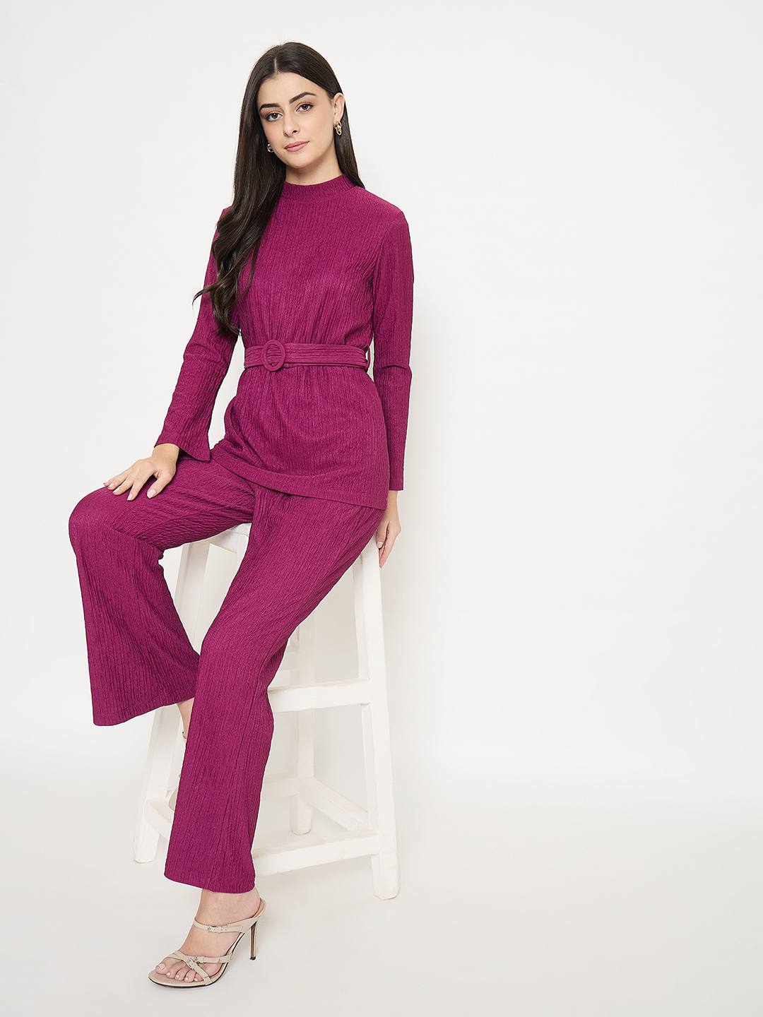 Madame Ribbed Belted Top and Bottom Plum Co-Ord Set