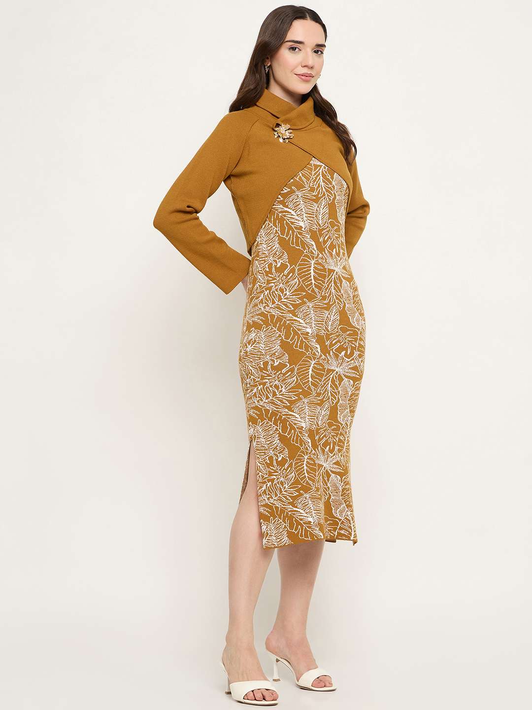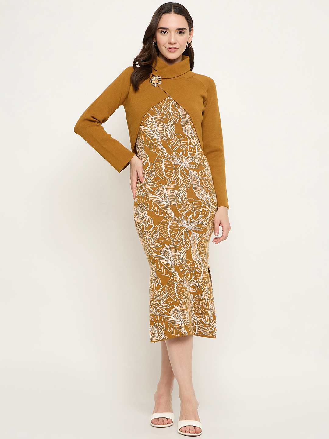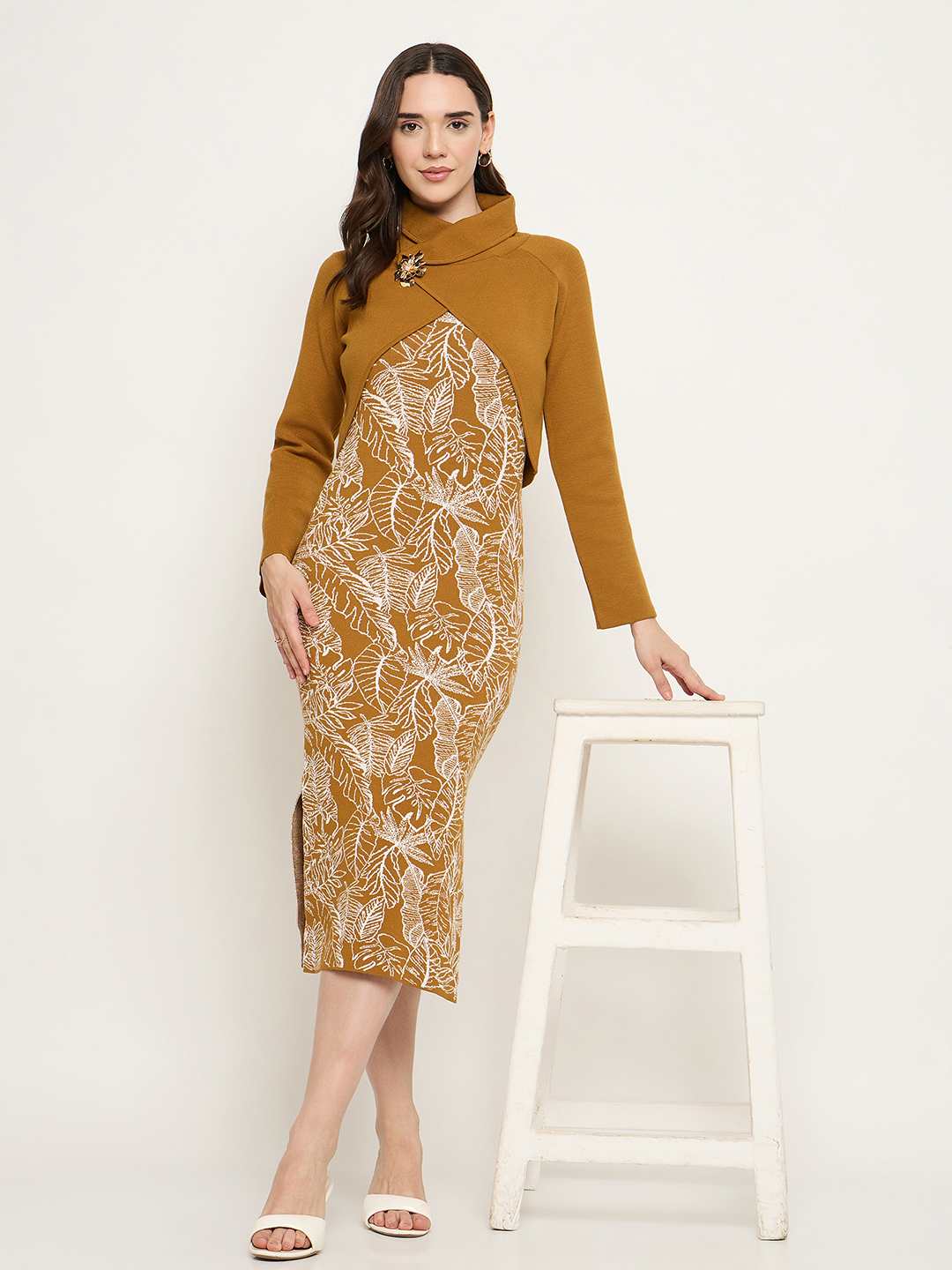 Madame Floral Print Dress and Wrap Sweater Mustard Yellow Co-ord Set