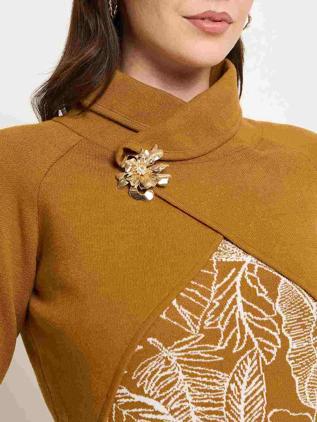 Bright, feminine, and beautifully coordinated. The fitted floral dress offers a soft, romantic silhouette, while the matching wrap sweater in mustard yellow adds warmth and structure. Paired together, they create a balanced, polished look perfect for brunches, daytime outings, or cozy-chic evenings.