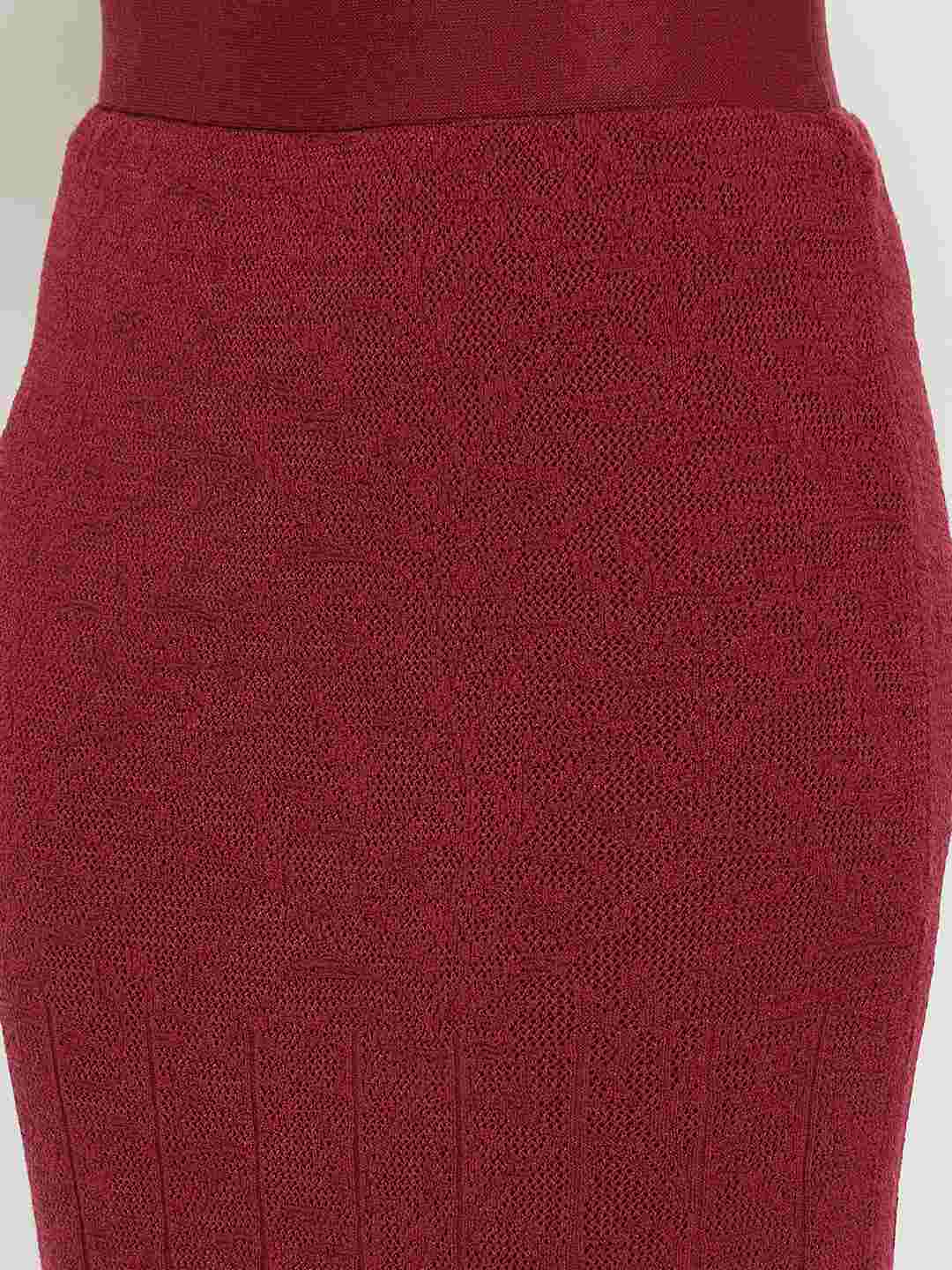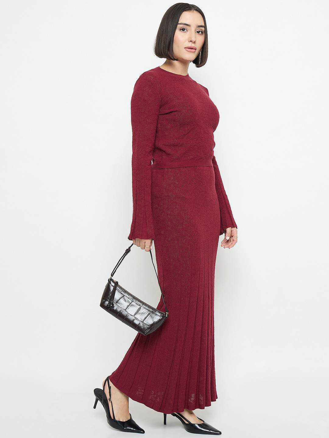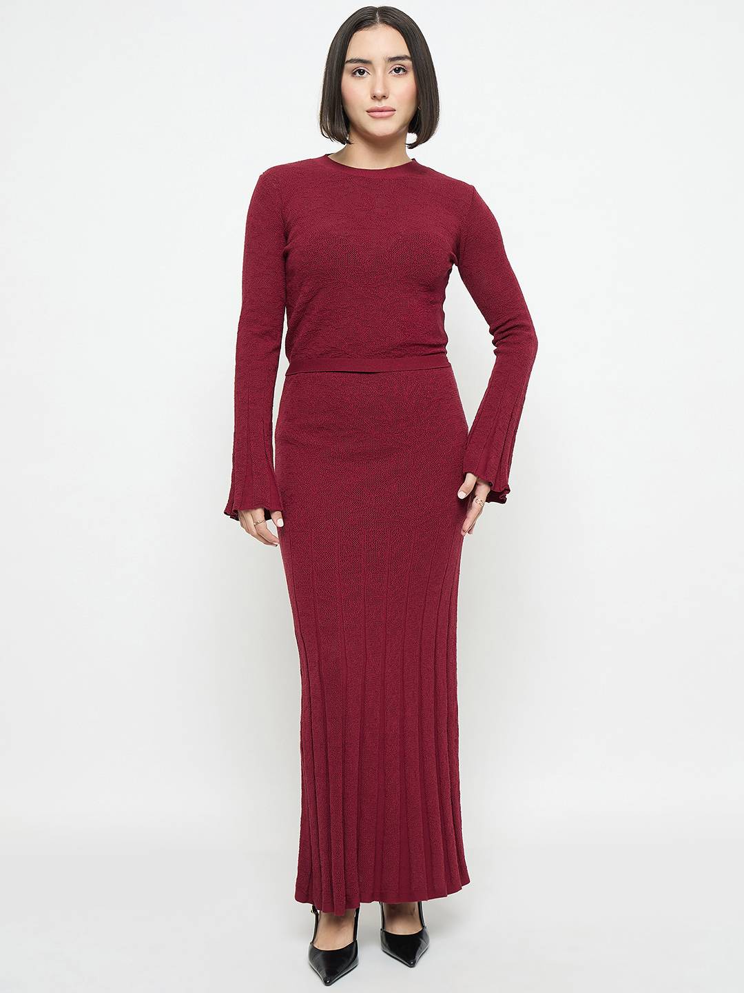 Madame Full Sleeve Top and Maxi Skirt Wine Red Knitted Co-ord Set