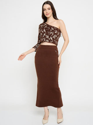 Madame Printed Top and Maxi Skirt Brown Co-ord Set