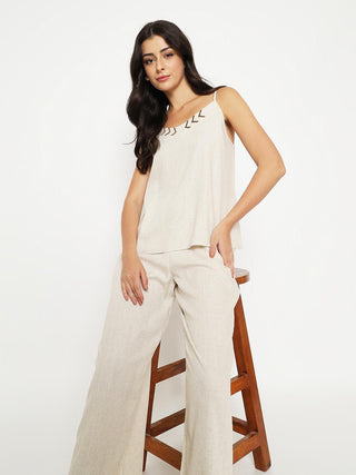 Madame Sleeveless Top and Straight Bottom Beige Co-ord Set