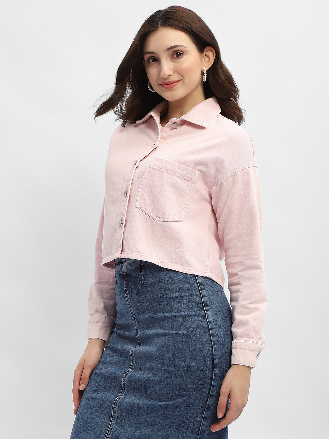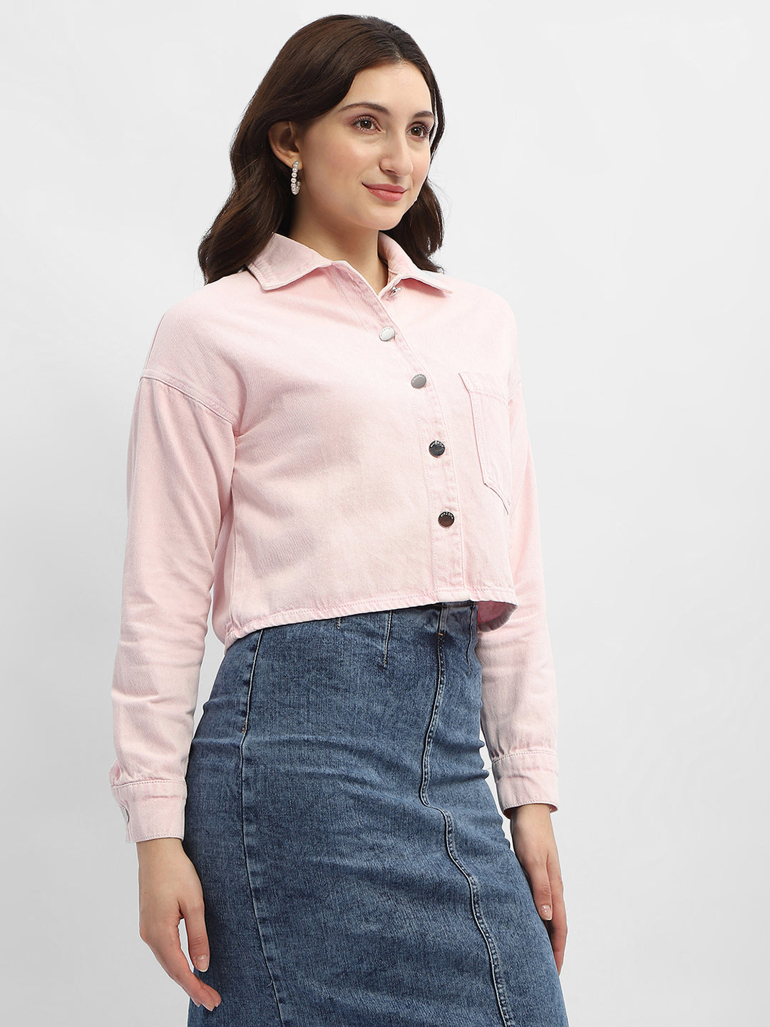 A delightful update on a timeless piece of apparel, the Solid Baby Pink Denim Jacket is now available. This jacket embodies both form and function thanks to its sturdy denim construction in a delicate baby pink shade. Its denim construction ensures long life and comfortable wear, and its solid colour style brings a dash of sweetness to any outfit. The feminine style of this jacket makes it an ideal layering piece, whether you're wearing jeans and a t-shirt or a floral dress.