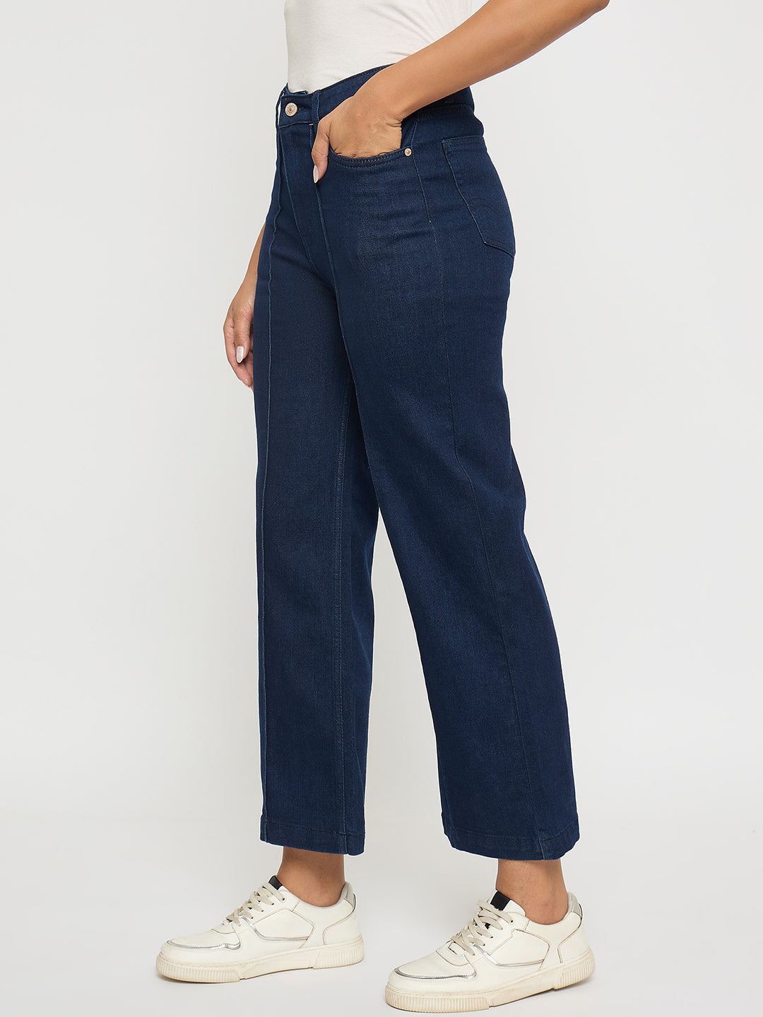 Madame Stone Wash Cotton Blend Dark Blue Flared Jeans
