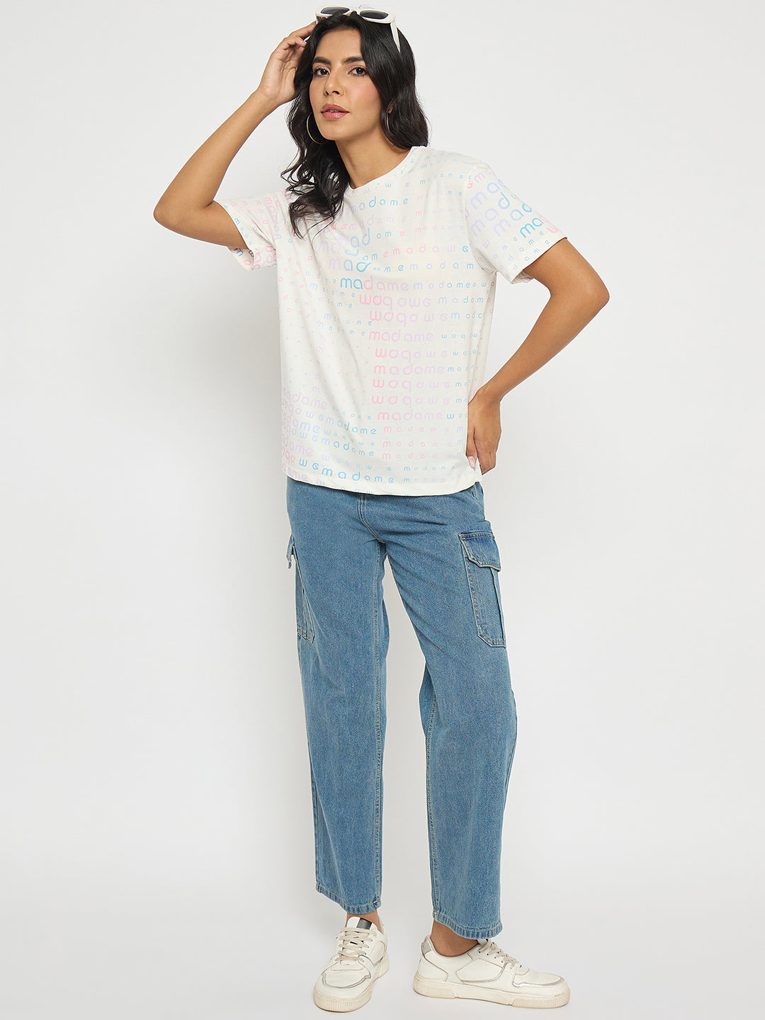Light blue wide-leg denim cargo made from breathable cotton for a relaxed, airy feel. Features roomy pockets and a laid-back vibe perfect for casual days.