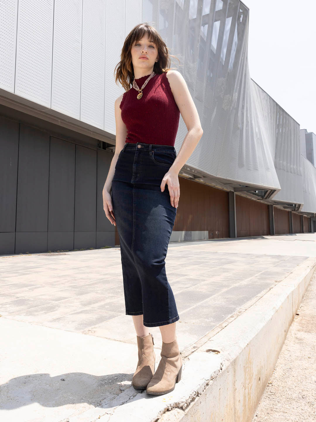 Madame Denim Pencil Skirt hugs your curves with a flattering pencil shape and a fresh light-wash finish. Perfect for brunches, casual outings, or office days — pair it with crop tops, shirts, or tucked-in tees for a cute, trendy vibe.