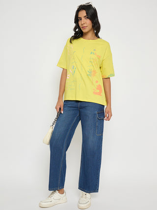 Madame Panel Detailed Tinted Green Wide Leg Denim Cargo