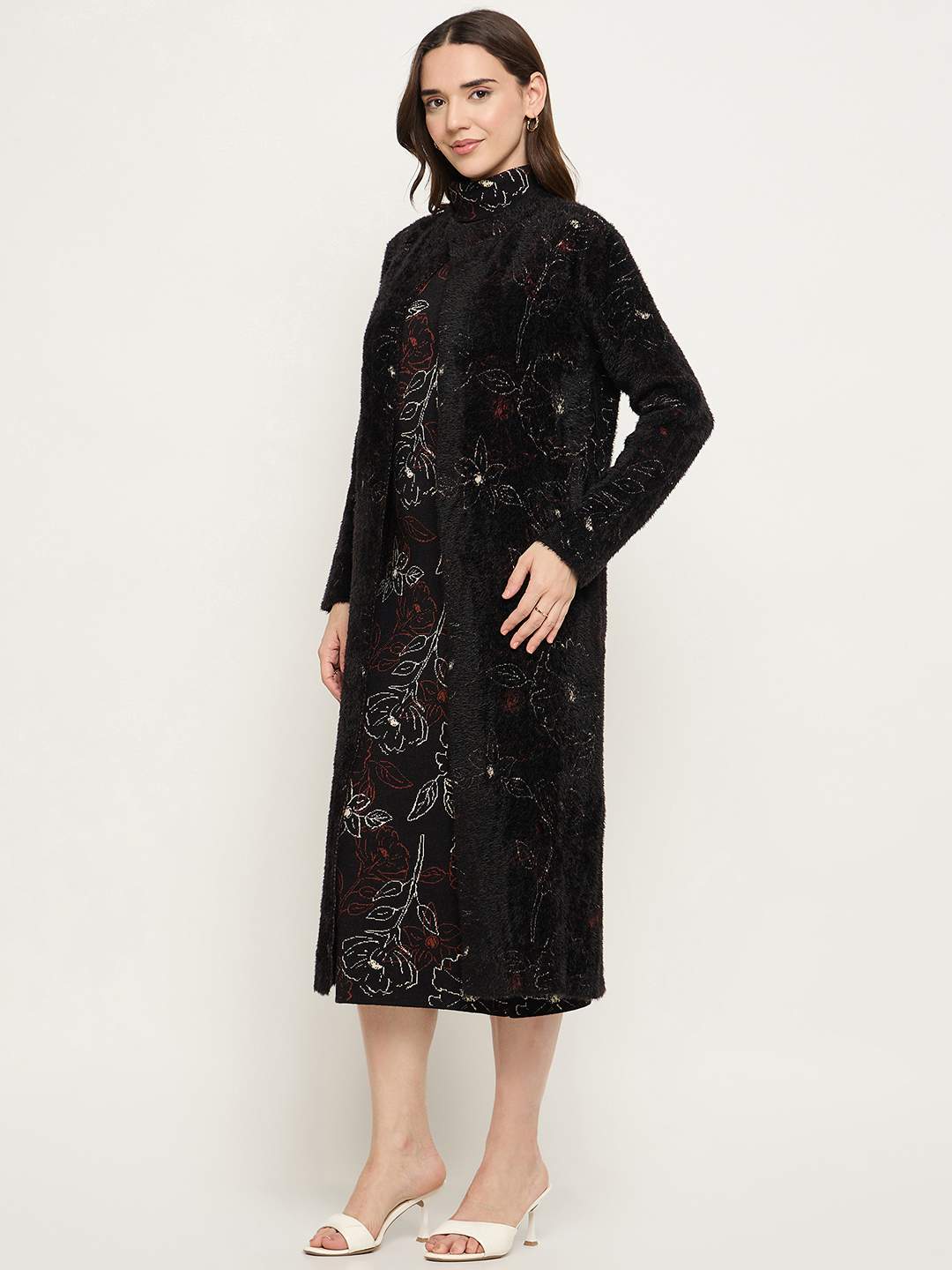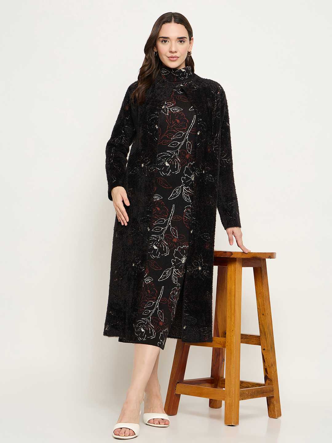 Make a statement with the Madame Black Three-Piece Co-ord Set. Crafted from soft, premium fabric, this versatile set includes a top, trousers, and a matching shrug/cardigan (or vest, if applicable), creating a polished, cohesive look. Perfect for office wear, casual outings, or stylish day-to-night ensembles.