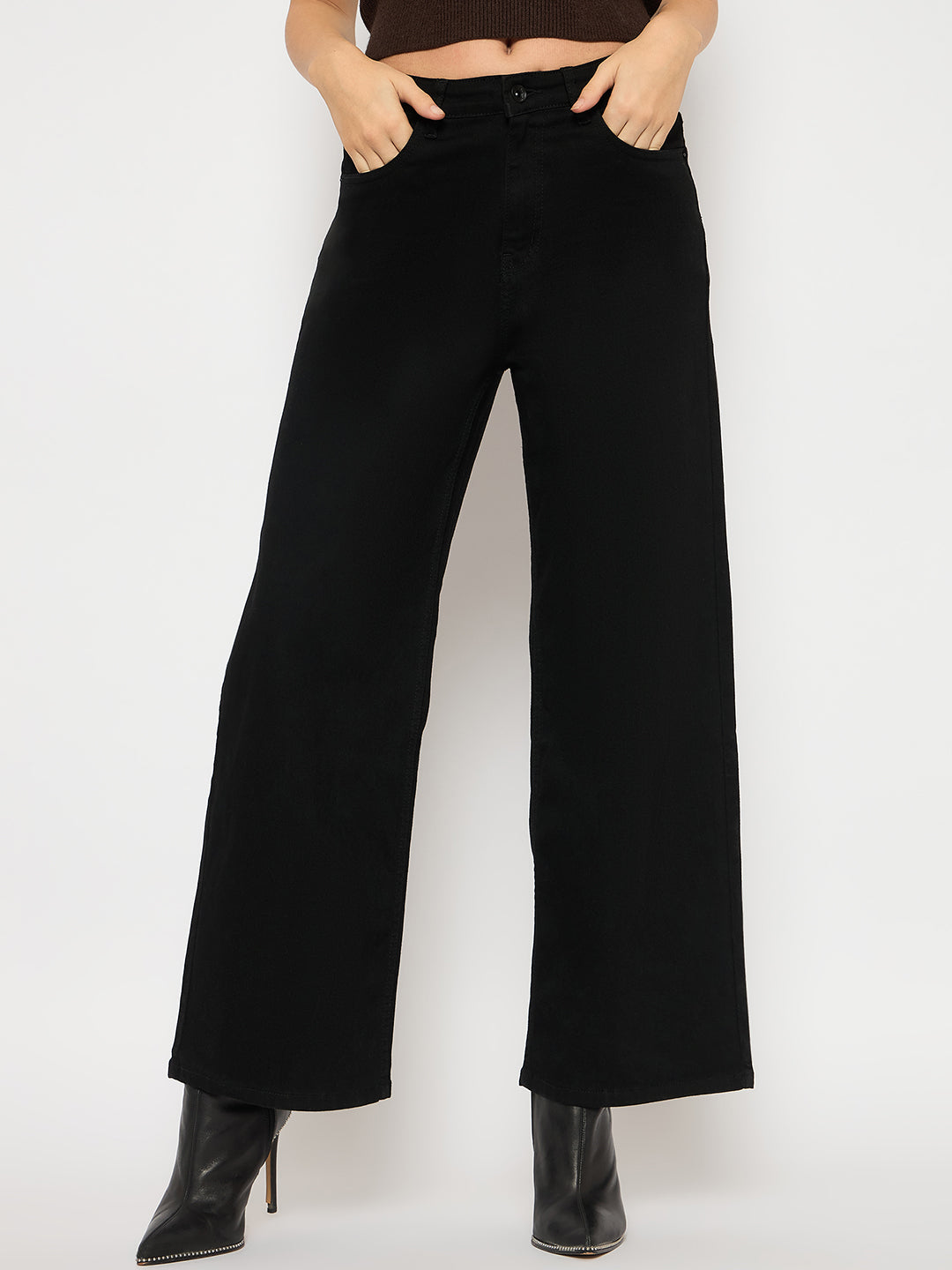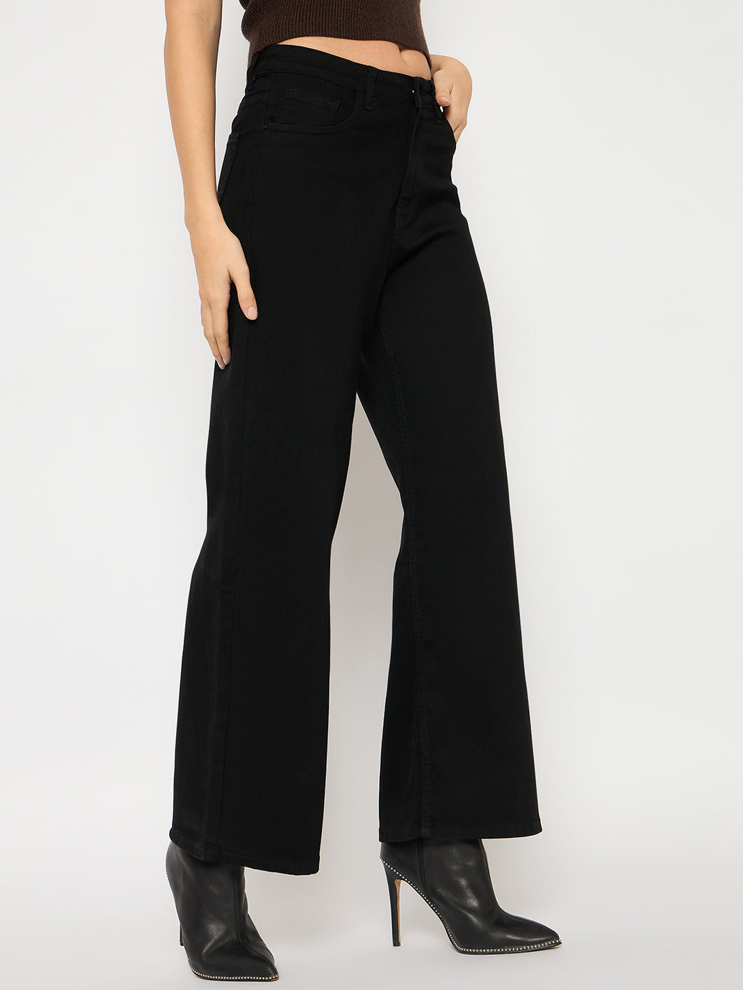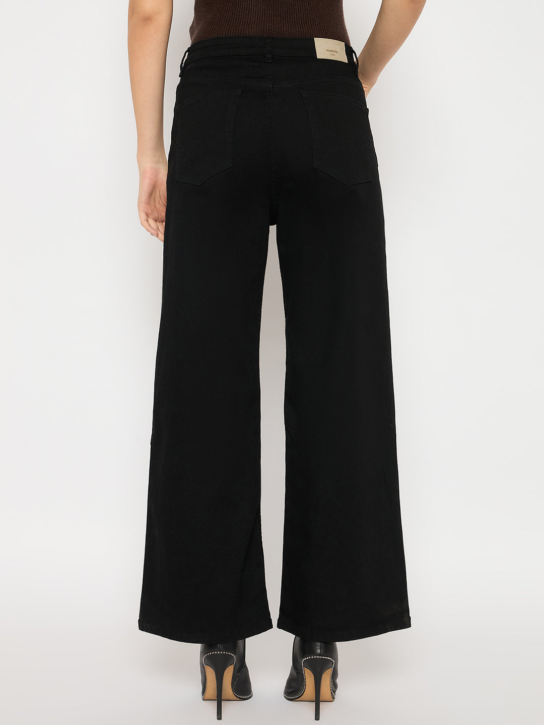Madame Cotton Blend Wide Leg Black Denim Jeans