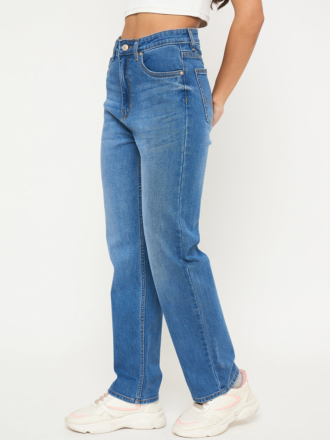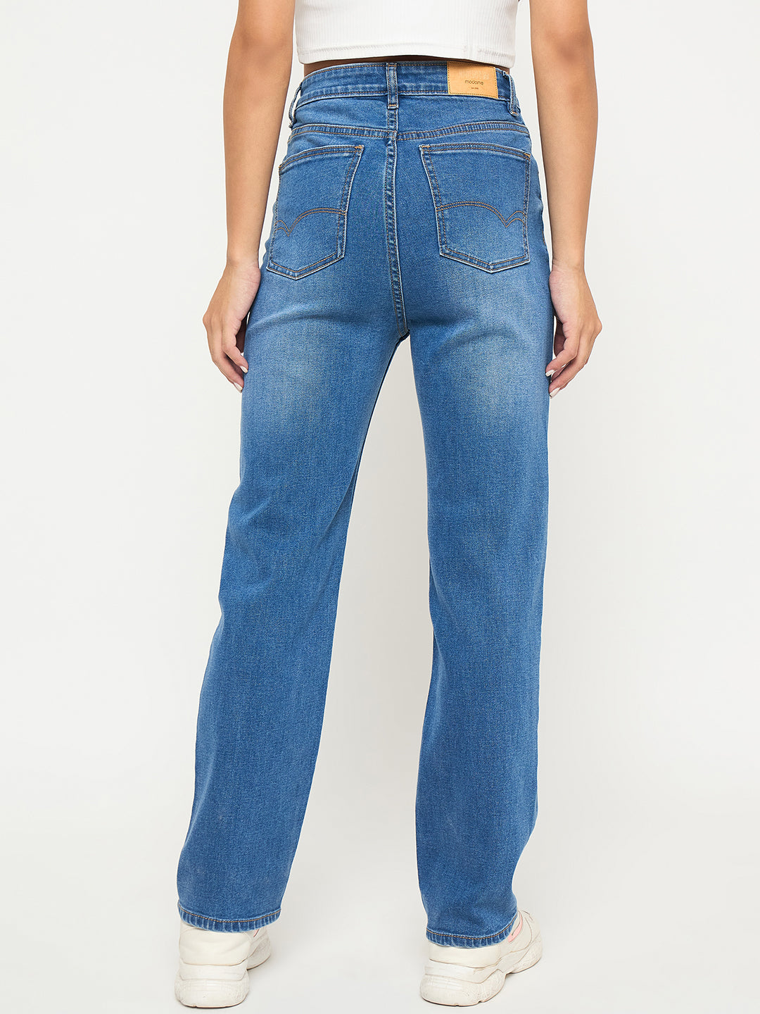 Madame Acid Wash Mid Blue Straight Cotton Blend Jeans