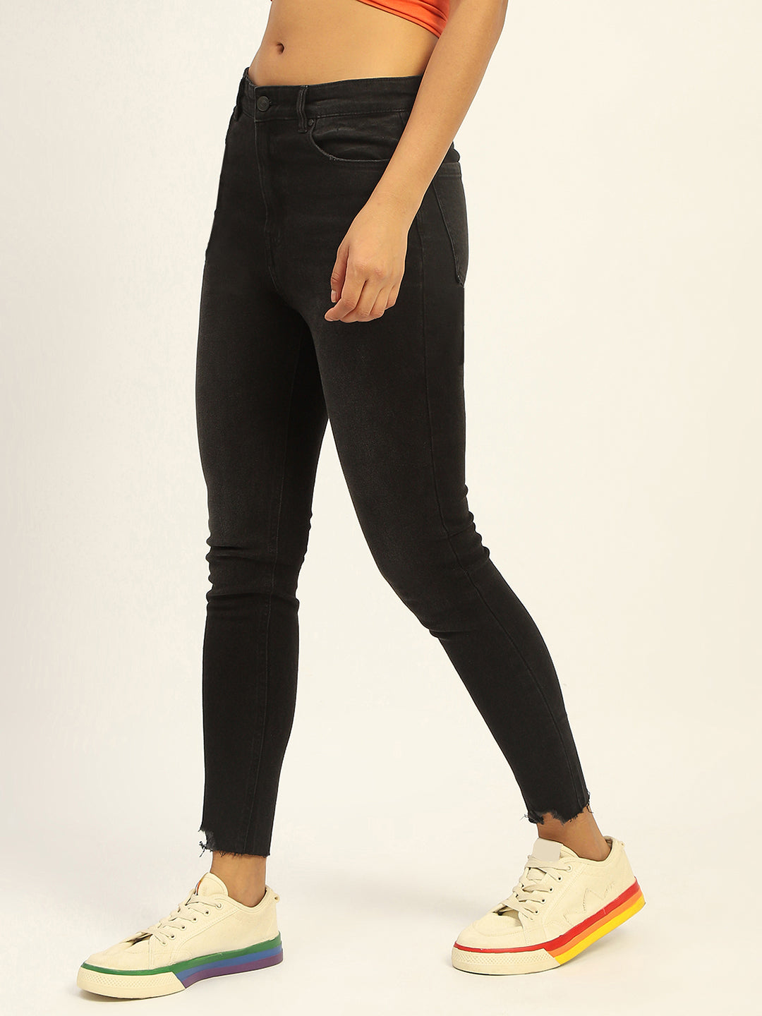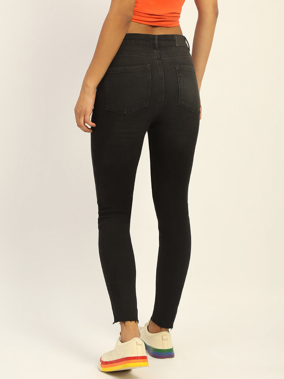 Madame Skinny Fit Raw Hem Cotton Black Denim