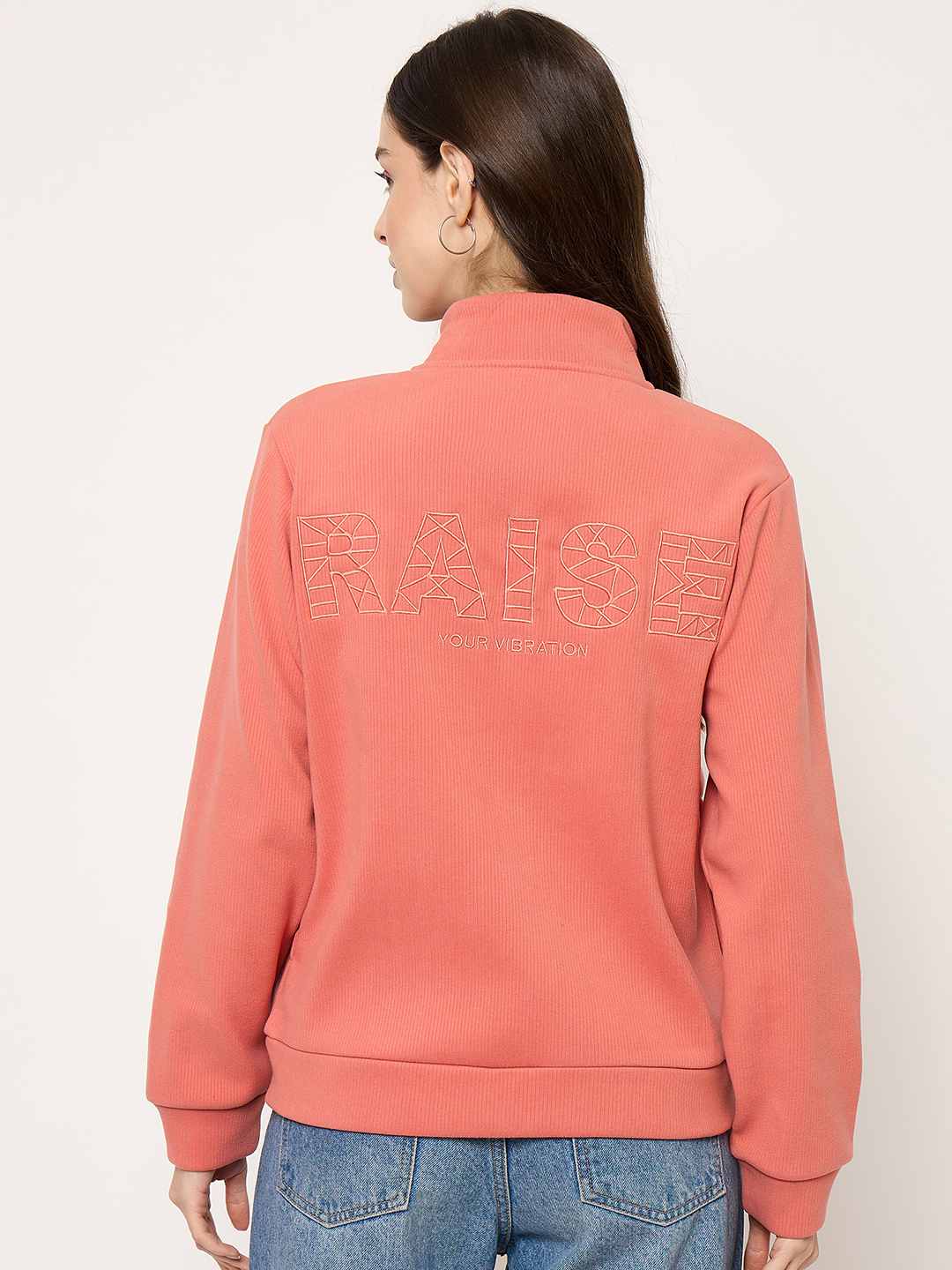 Madame Mock Neck Solid Peach Sweatshirt for women soft fabric, mock neck design, relaxed fit, ideal for casual wear, layering, and everyday comfort.