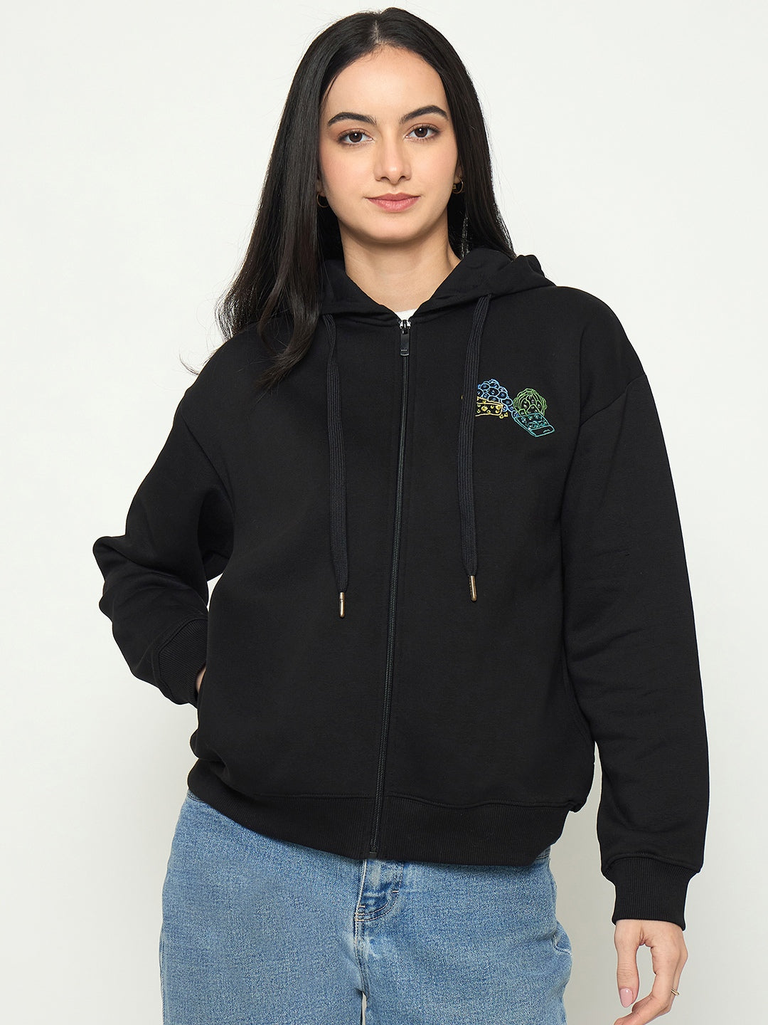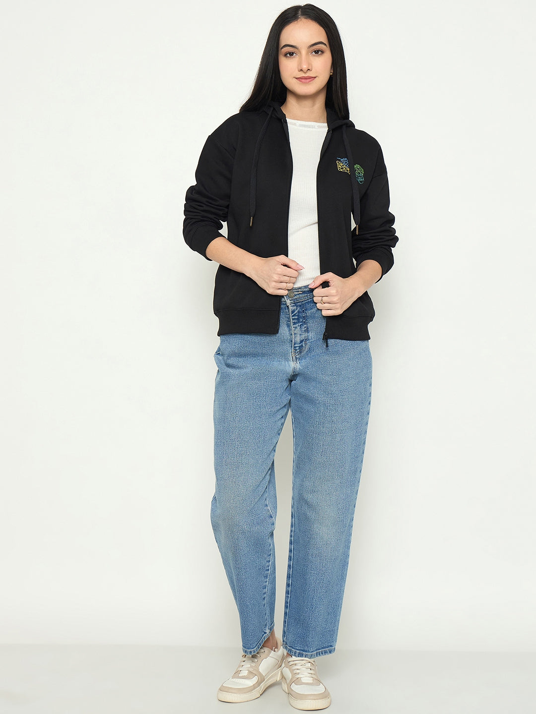 Casual chic meets comfort in this black printed cotton sweatshirt. Perfect for layering, lounging, or pairing with jeans.