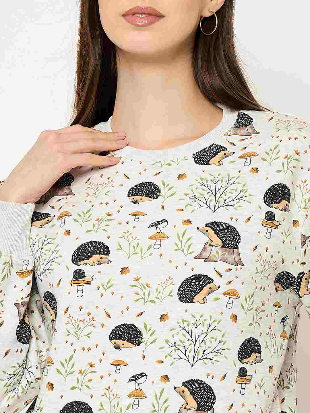mSECRET Allover Printed Ecru Colour Sweatshirt