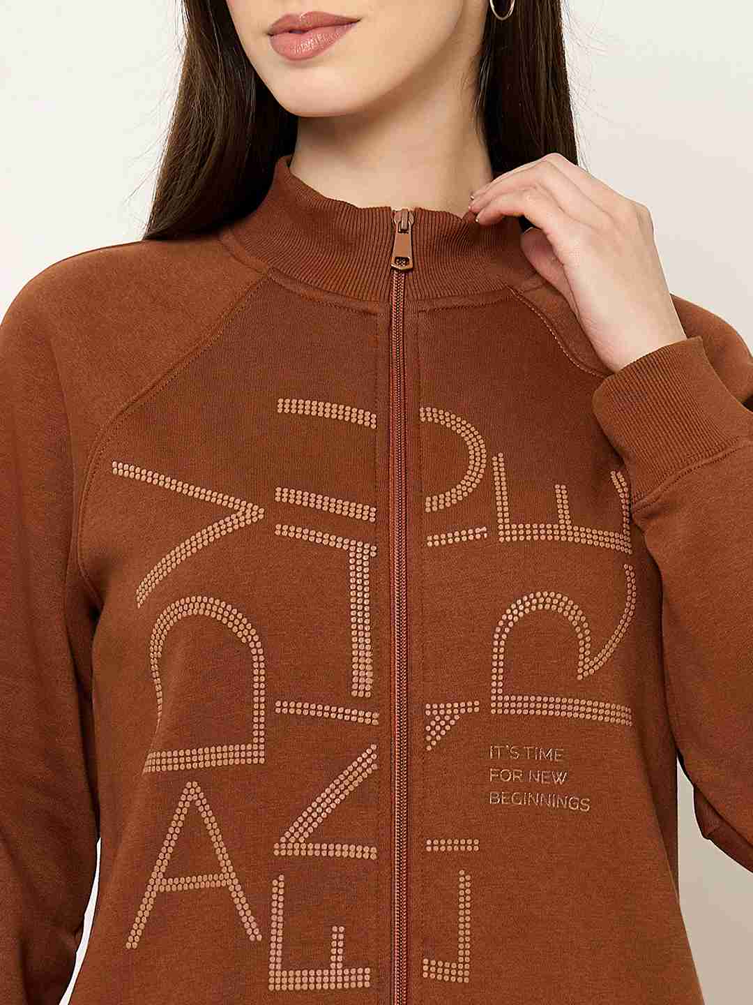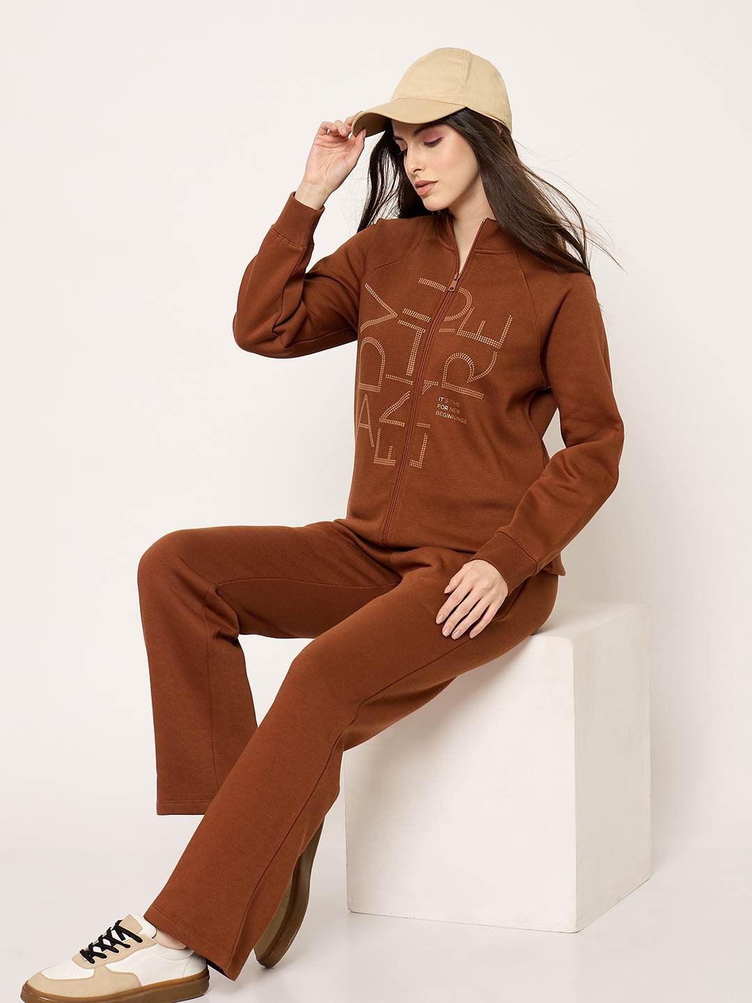 Stay cozy and stylish with the mSECRET Brown Fleece Sweatshirt. Featuring soft fleece fabric and a relaxed fit, this tracksuit is perfect for lounging, casual outings, or light workouts.