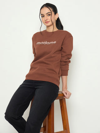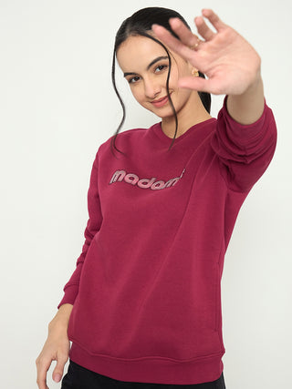Madame Crew Neck Printed Wine Red Sweatshirt