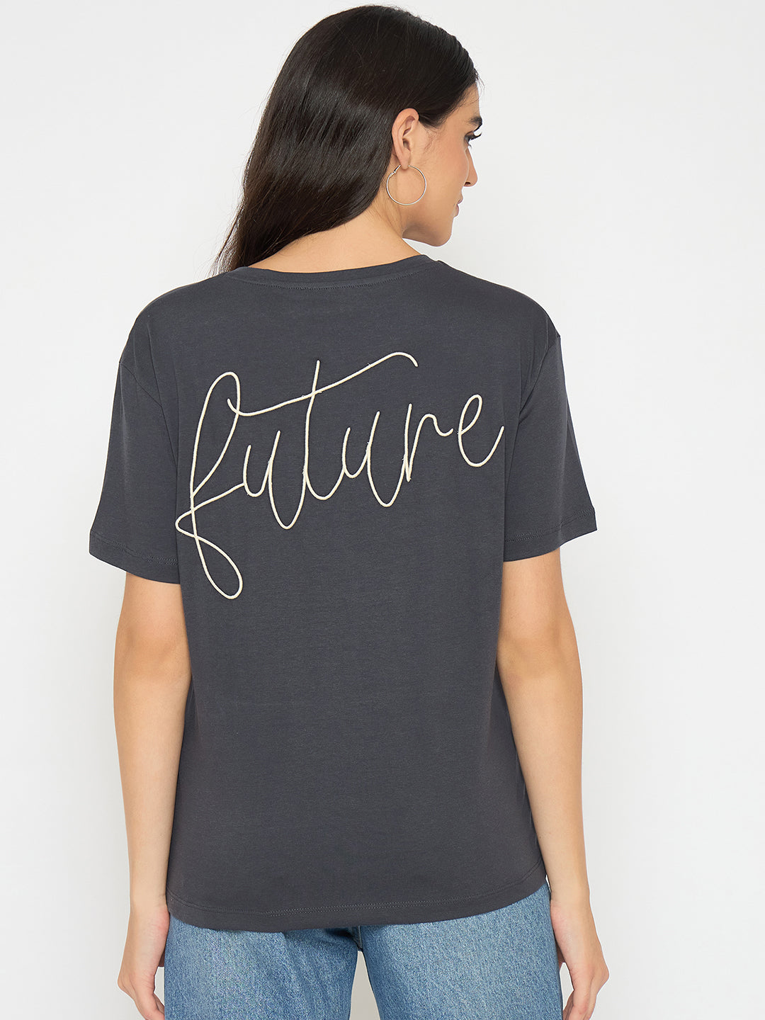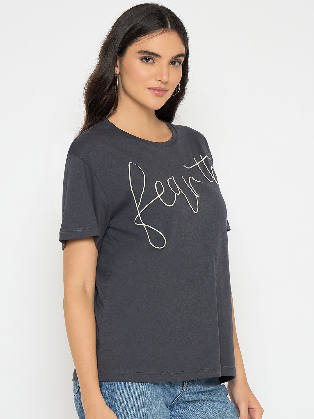 Madame Typography Print Charcoal Black Cotton T-shirt