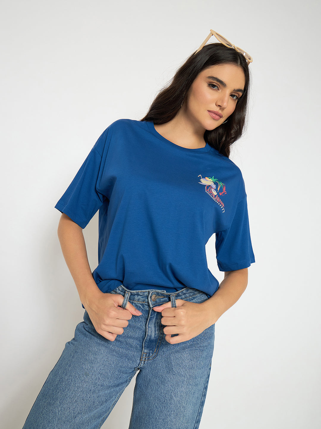 Madame Graphic Adorned Royal Blue Cotton T-Shirt