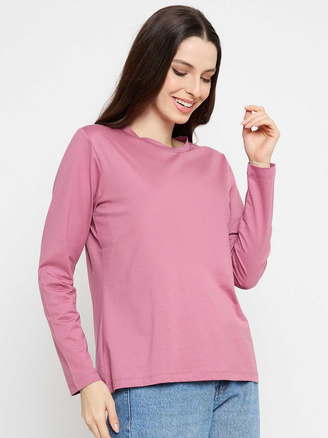Soft lilac meets modern flair in this cotton-blend tee. Its subtle gradient effect adds a playful twist. It can be easily paired with jeans, shorts, or layered looks.
