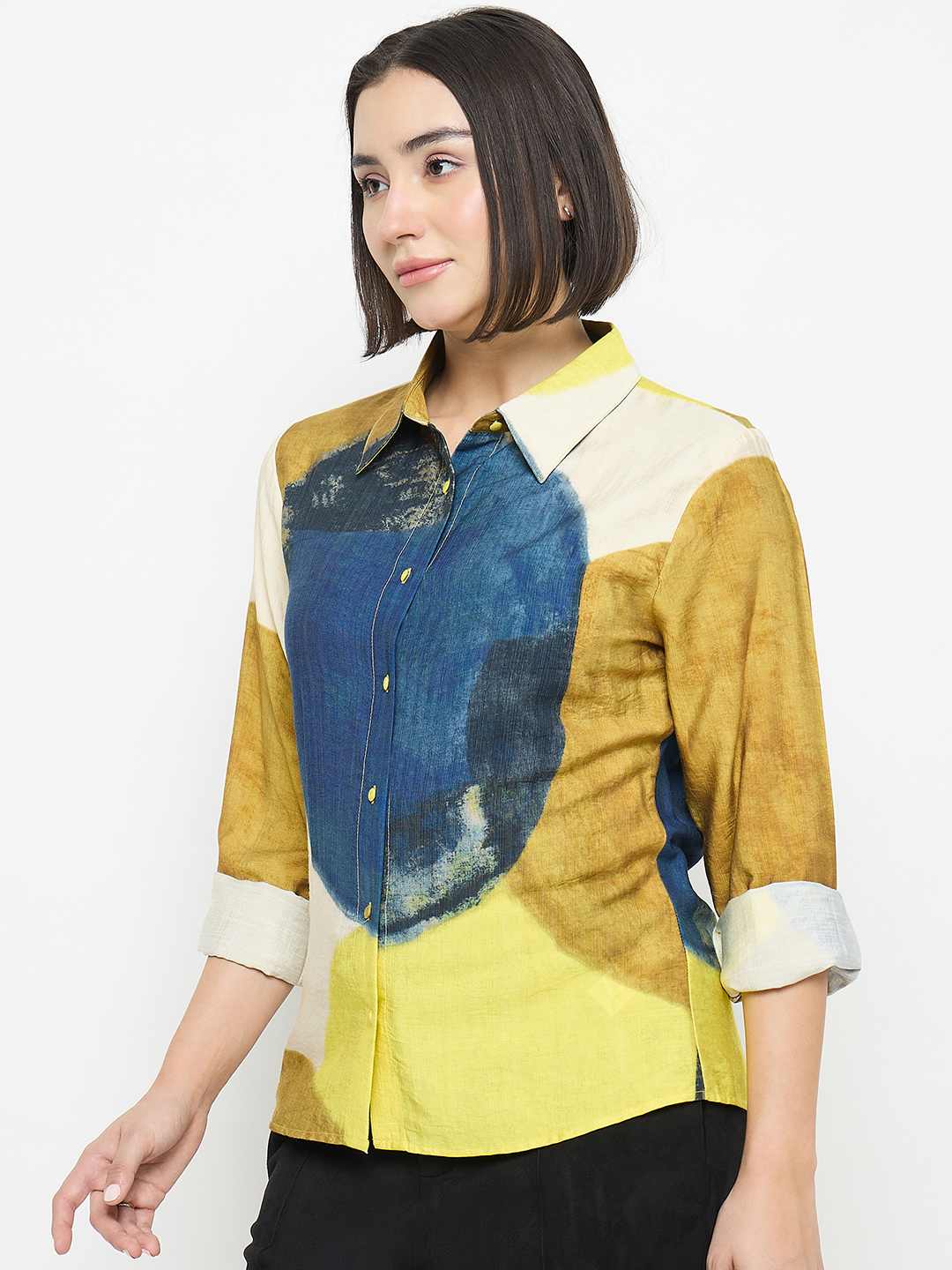 Stylish, comfortable, and versatile! The Madame Abstract Print Rayon Blend Beige Shirt pairs a soft, lightweight fabric with a playful abstract pattern. Perfect for casual brunches, office days, or weekend outings, this shirt is a chic addition to any wardrobe.