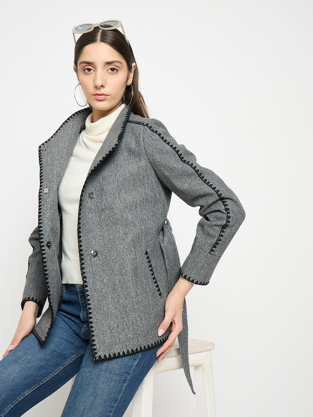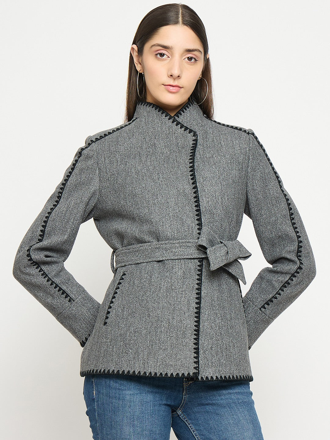 "Madame Wrap Style Belted Grey Coat