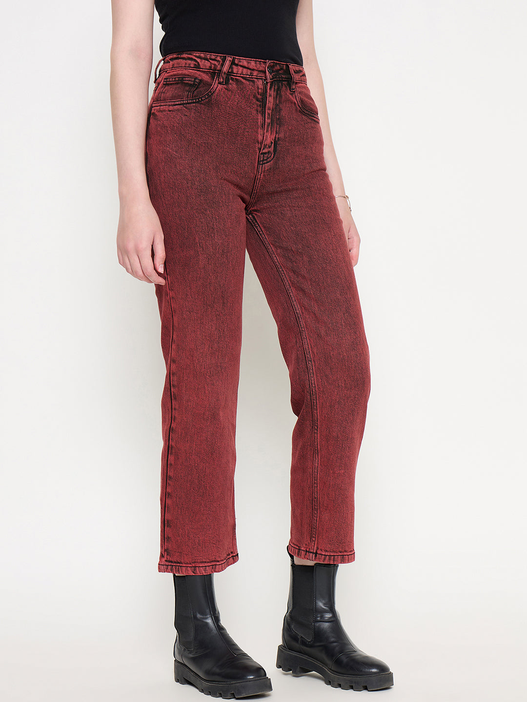 Madame Cotton Blend Acid Wash Red Denim