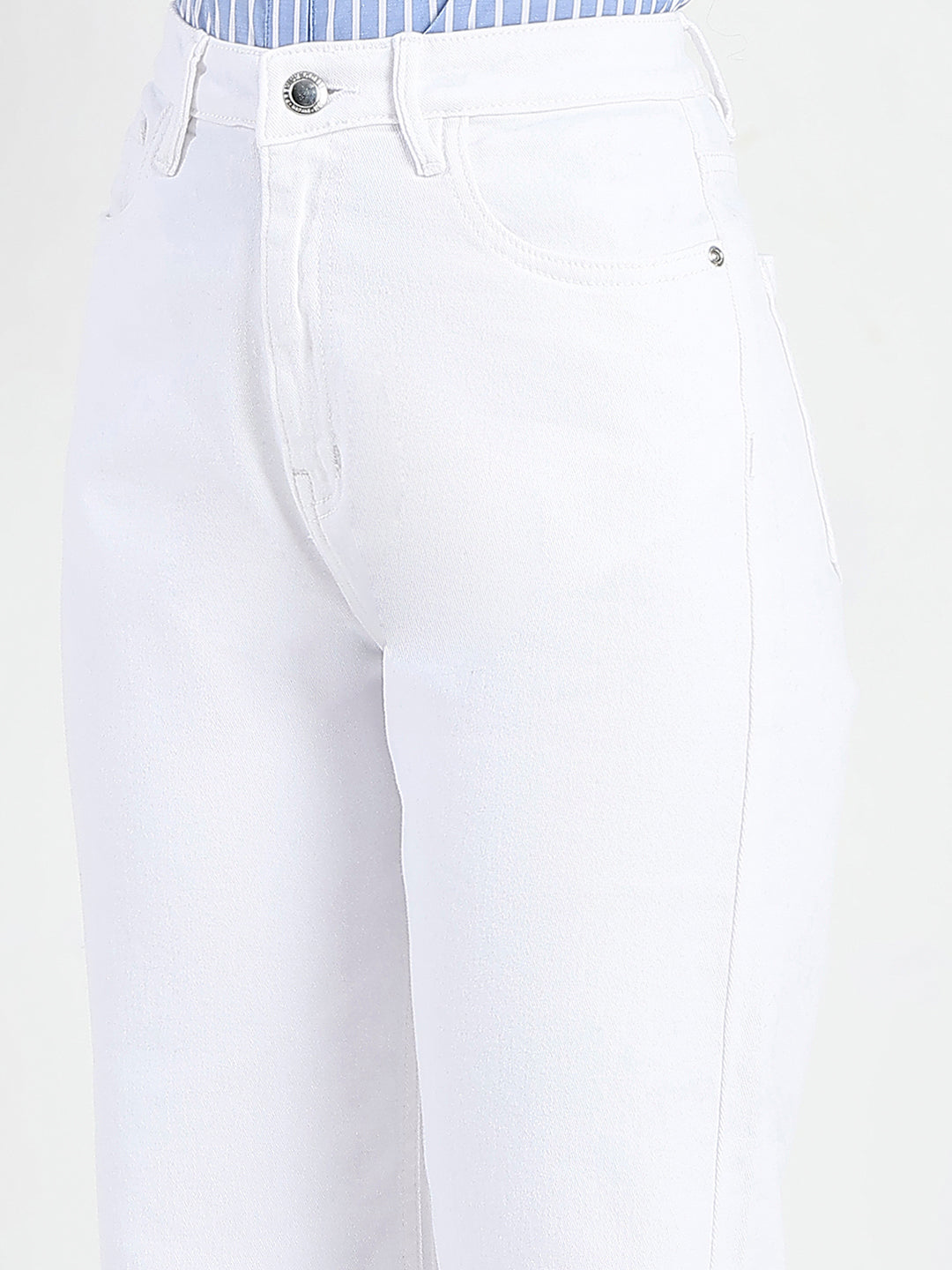 Wide-leg white jeans with a stone-wash finish and subtle whiskering. Designed for a laid-back yet refined look, perfect for casual outings or elevated styling.