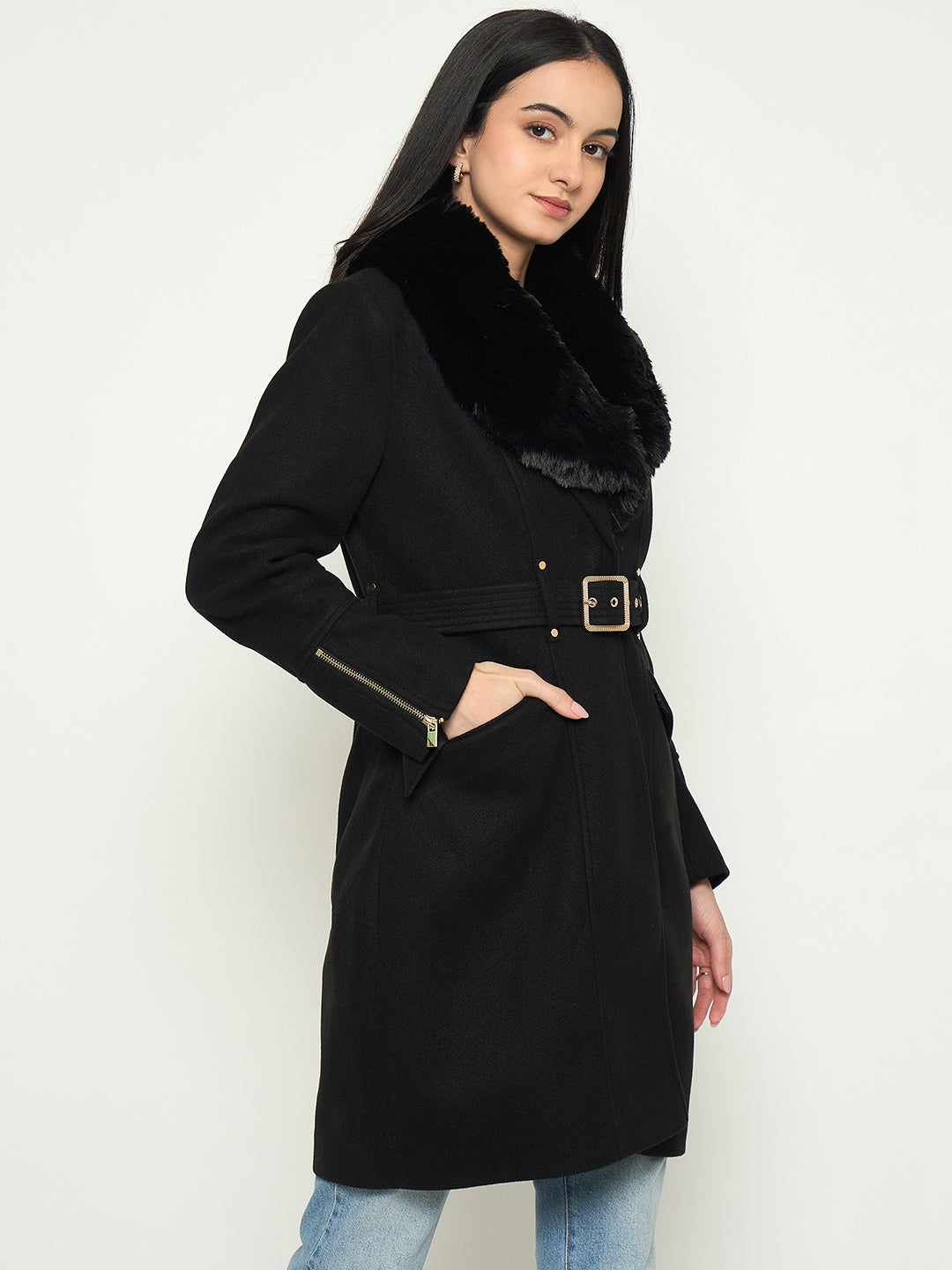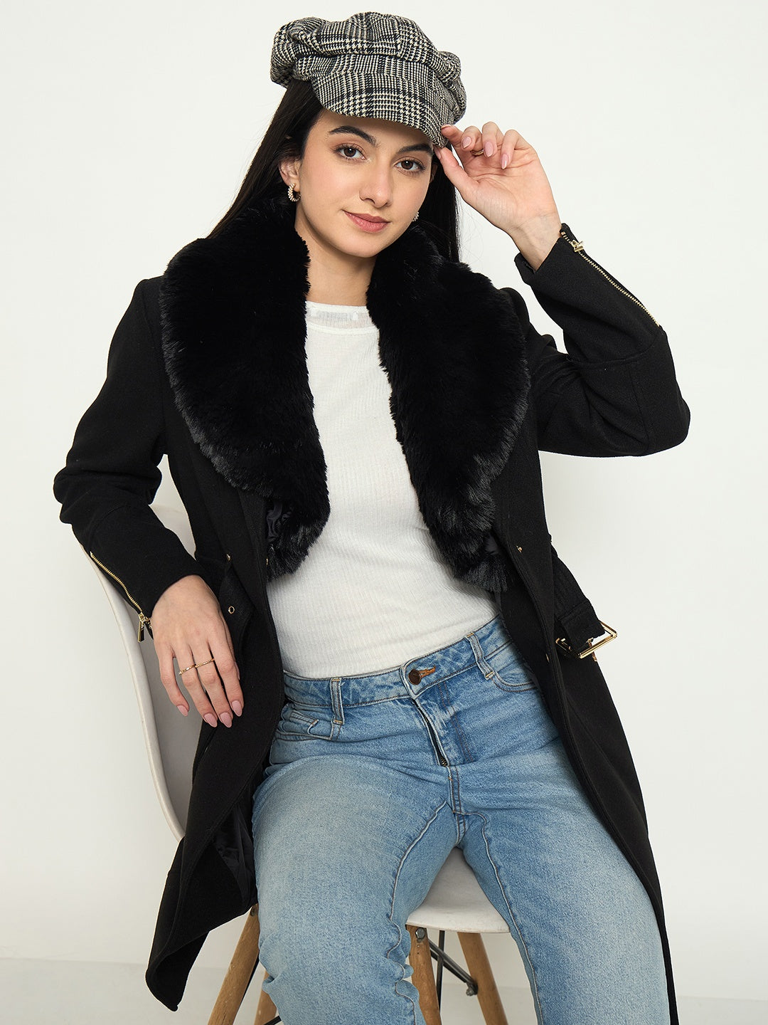 Madame Faux Fur Shawl Collar Long Coat with Belt