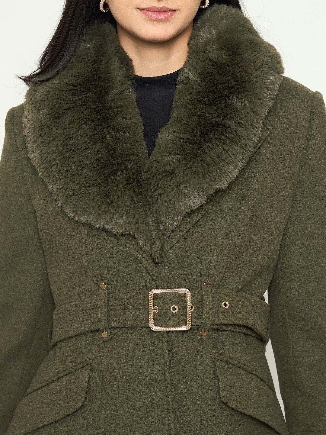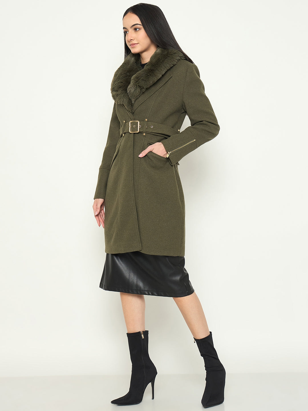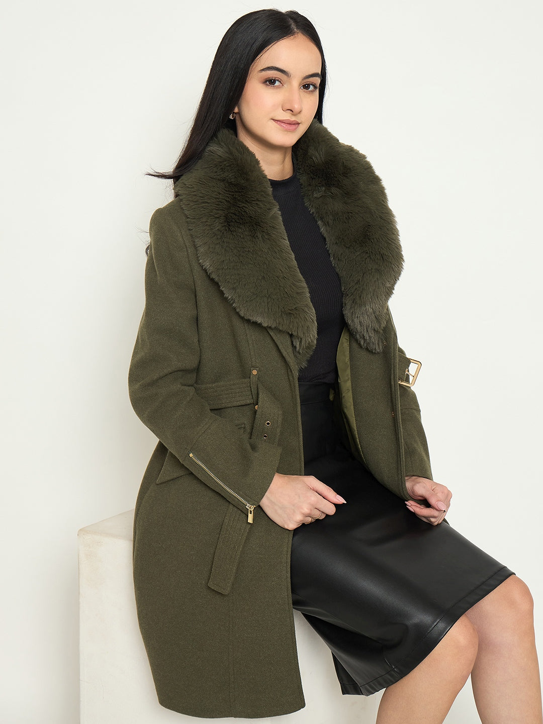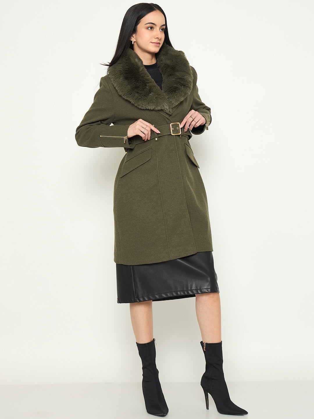 Madame Faux Fur Shawl Collar Long Coat with Belt